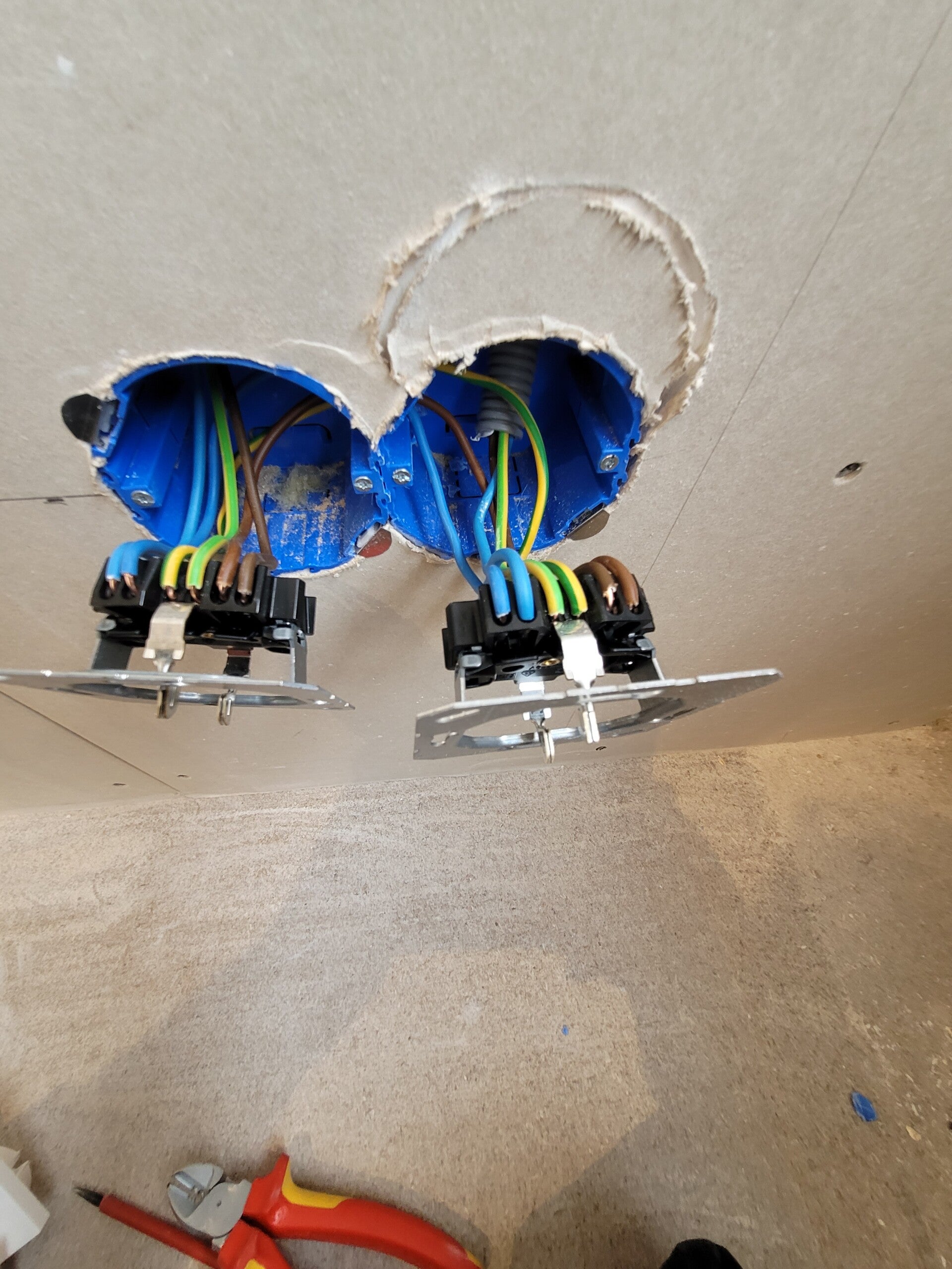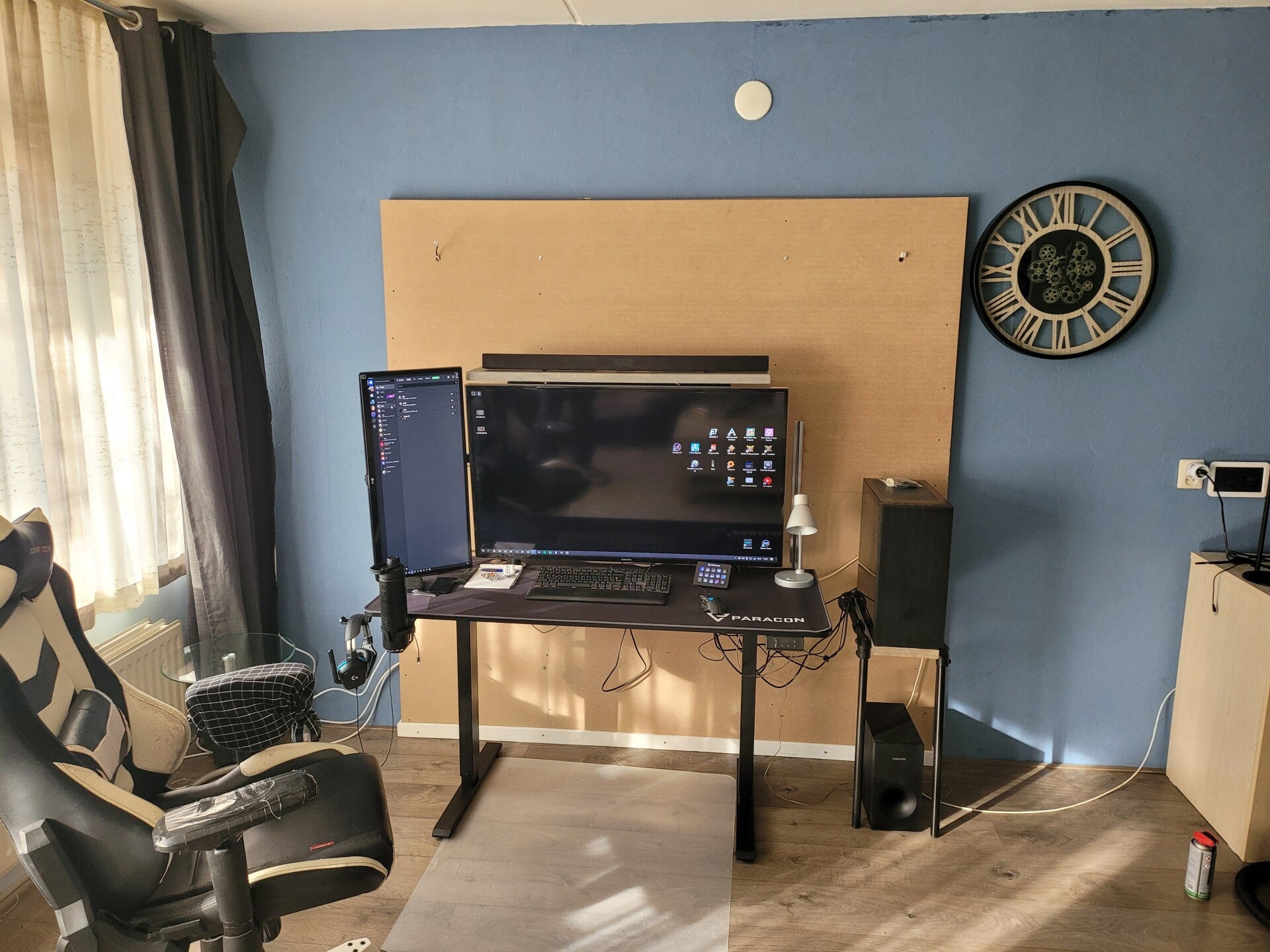 Voor zet wand met elektra er in en geleider rails voor de elektrische laag hoog bureau