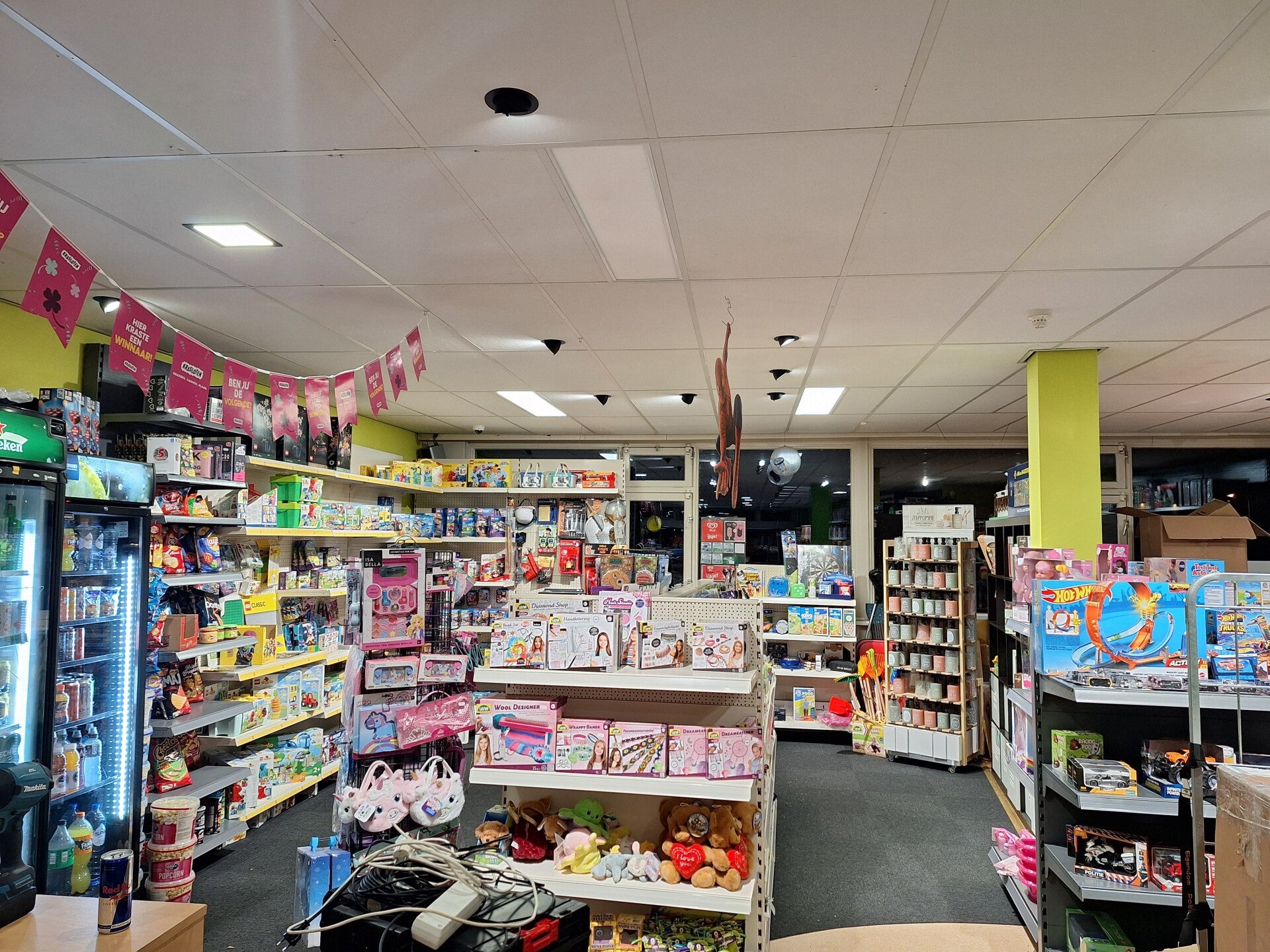 Speelgoed winkel De Lier Kreeg na vele jaren een verfrissing weg met al die oude lampen en welkom led lichtplan van D.M.E en natuurlijk ook weg met filmclub op het boeideel eindelijk de naam die de winkel verdient Peet Plaat ontwerp D.M.E